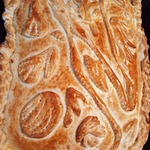 • Лист слоёного теста разрезать пополам на длинные прямоугольники
