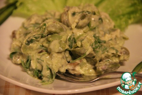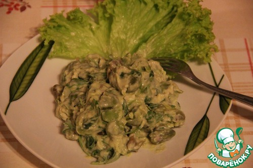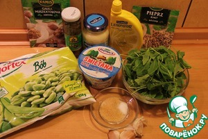 - Бобы (Вес нетто, сваренные и почищенные) — 500 г