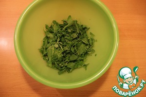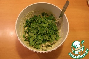 Добавляем нарезанную рукколу. В холодильнике хранится 2-3 дня. После этого срока тоже съедобная, но только листья рукколы становятся более мягкими.