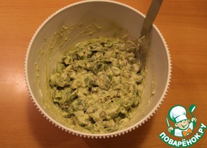 Достаём из холодильника настоявшийся соус и перемешиваем с бобами. Убираем в холодильник