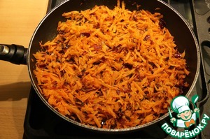 Добавляем морковь и жарим, помешивая, около 5 минут.