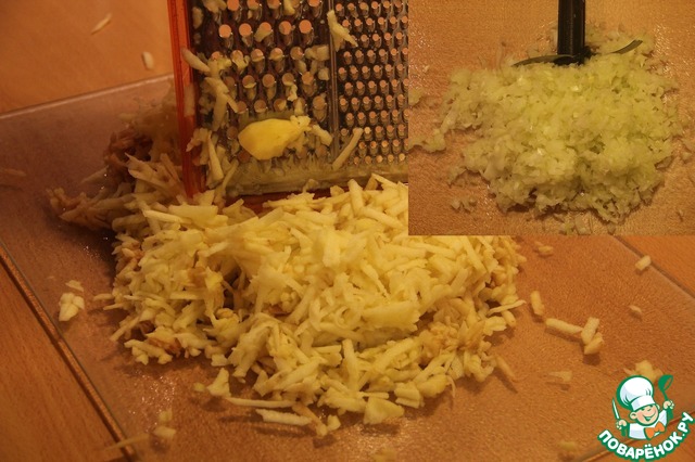Яблоки очищaем от кожуры, вырезаем середину и натираем на крупной тёрке.