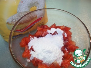 Мелко нарезаем ее и добавляем сахарную пудру.