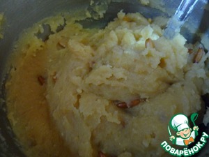 В кастрюле растапливаем маргарин, высыпаем орехи. Помешиваем, поджариваем орехи (1-2 минуты).