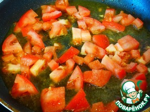 • На этом же масле поджариваем помидор, помидор обязательно присолить и приправить щепотками черного перца и орегано. Сваренные фасоль, бобы перемешать с поджаренным луком, чесноком, морковью, помидором. Посыпать свежей зеленью кинзы и наслаждаться великолепным вкусом.