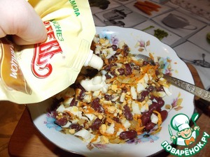 - Майонез (1 ложка на фасолевый салат, 2 на салат из дайкона) — 3 ст. л.