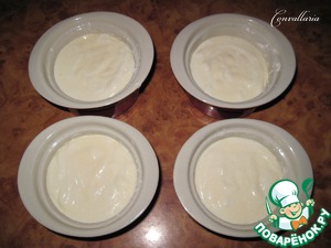Вылить творожную массу на 3/4 высоты формы и выпекать в духовке, предварительно разогретой до 170 градусов, примерно 30 минут. -