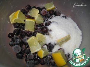Для ягодного топпинга: пробить блендером ягоды (у меня замороженная из домашних заготовок), кусочки лимона и сахар.