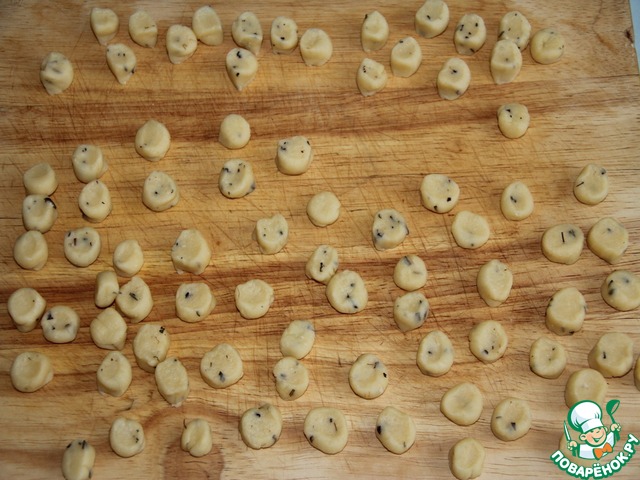 Для клецек. Муку разотрите с мягким сливочным маслом, смешайте с базиликом, солью, влейте достаточное количество воды и замесите мягкое тесто. Скатайте тесто жгутиками и нарежьте кусочками.