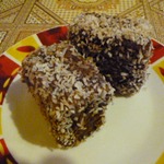 Lamington. Где-то они указаны как пирожные, где-то – как печенье. Мне кажется, что ближе все-таки к пирожным. Австралийское лакомство. Готовится очень просто. Вариантов рецепта ламингтонов наверное столько же, сколько в России вариантов приготовления «Наполеона»))) Общим остается лишь внешность пирожных – прямоугольные кусочки бисквита в шоколадном соусе, обсыпанные кокосовой стружкой.
