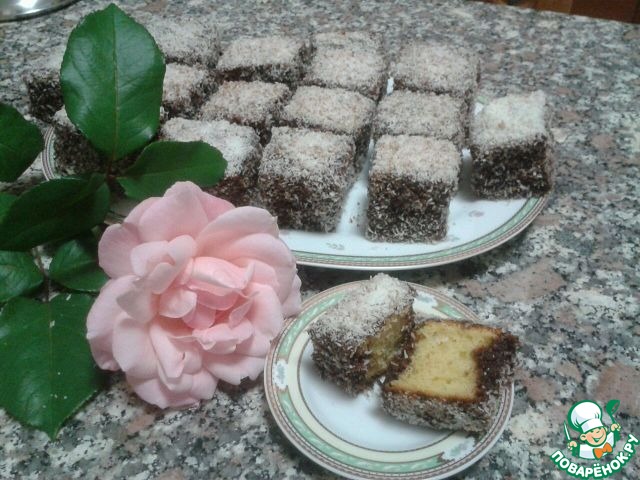 Ламингтоны готовы. По мне – основа похожа больше не на бисквит, а на кекс - очень вкусный кекс сам по себе. Возьму его на заметку))