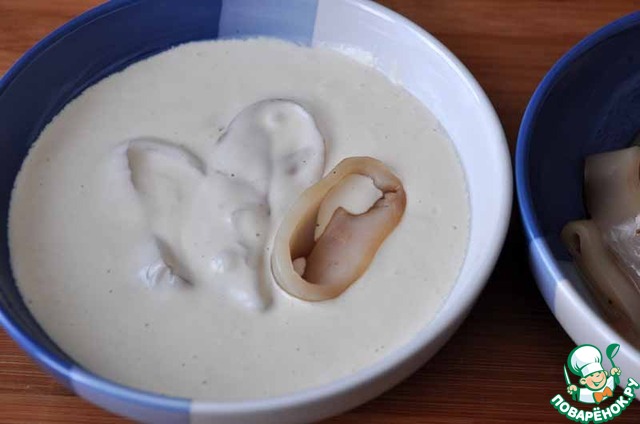 Макаем кальмар в кляр.