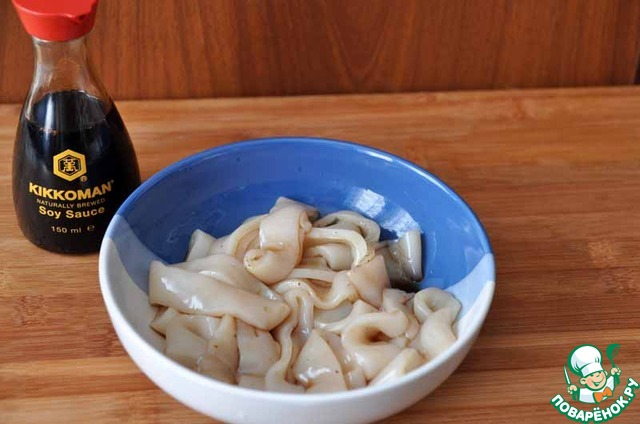 Режем кальмар "кольцами".