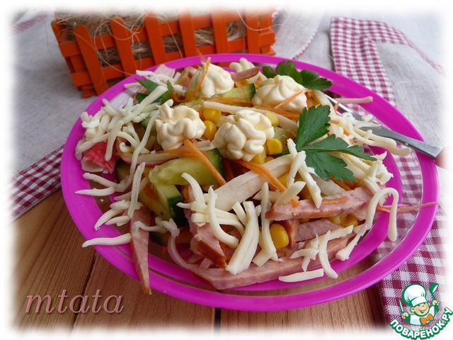 Восхитительный и пикантный салатик. Очень вкусный и необычный. Оригинальное сочетание продуктов не оставит равнодушными ваших гостей.
