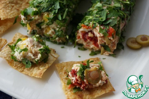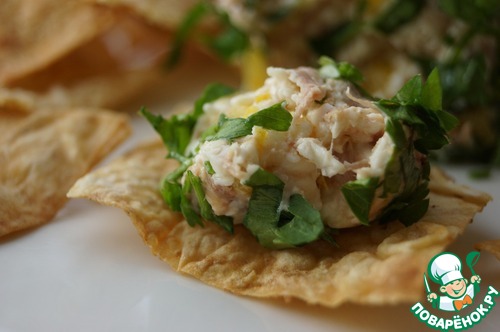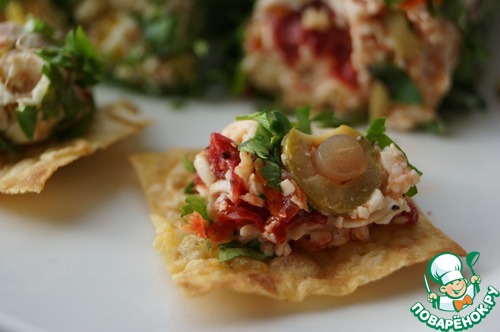 Каждый желающий берет себе чипсы (крекеры и т. д.) и намазывает закуску по своему вкусу.