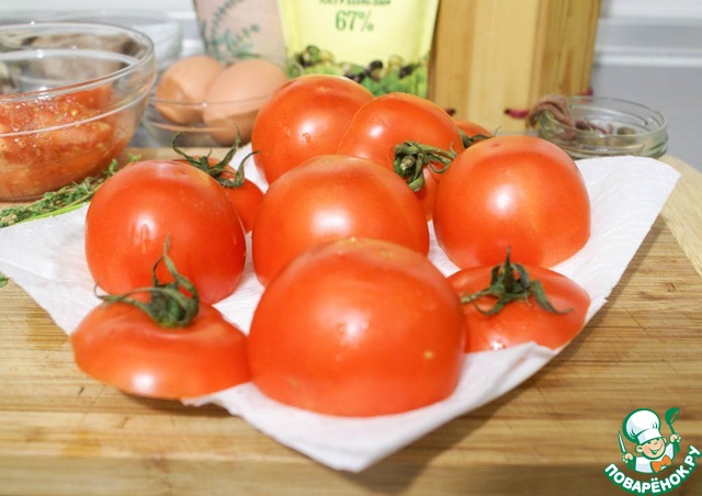 Поскольку помидоры фаршируются начинкой, близкой для средиземноморской кухни, то и майонез стоит взять оливковый. -