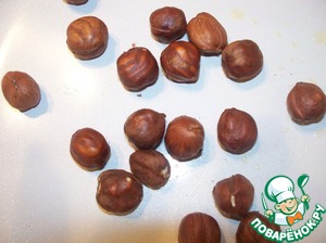 Фундук обжариваем на сковороде в 1 ч. л. оливкового масла (после остывания кожица с орешков легко снимется); измельчаем, но не очень мелко.