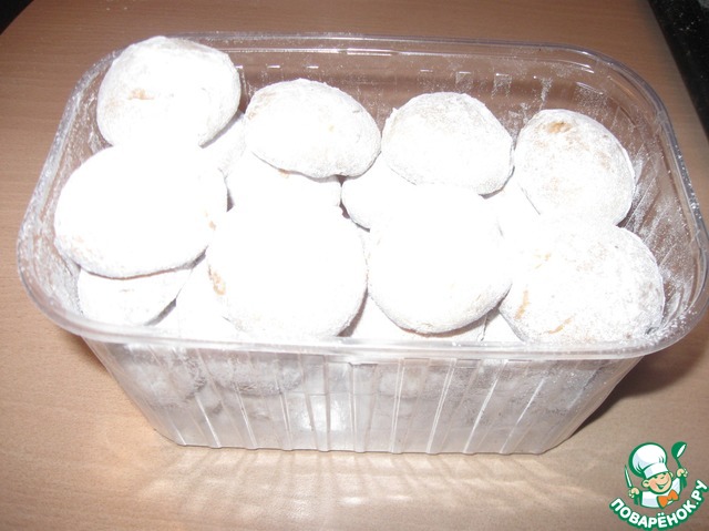 Полностью остудить и обвалять в сахарной пудре. Очень нежное и ароматное печенье, которое просто тает во рту.