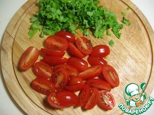 Для приготовления собственно салата нам будут нужны: белая фасоль, помидоры черри и петрушка.