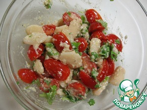 К фасоли добавляем оставшееся на предыдущем шаге масло, помидоры и петрушку. Еще раз аккуратно перемешиваем.