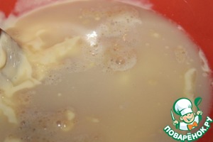 Дрожжи развести в теплой воде с чайной ложкой сахара, оставить на 10 минут.