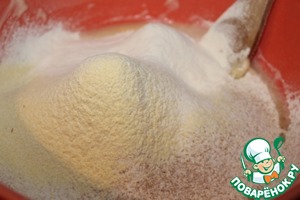 Добавляем какао, корицу, ванилин, щепотку соли, сахар (20гр), перемешиваем и замешиваем гладкое тесто.