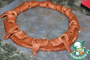 Сделать в центре раскатанного круга сквозные, но не доходя до краёв, разрезы в виде снежинки.