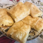 Порезать лаваш на три части, выложить на блюдо и подавать горячим.