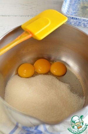 Желтки разотрите с сахаром. Если вы будете делать с ванильным сахаром, то и его добавьте сразу.