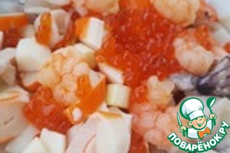 Смешать все ингредиенты. Добавить растительное масло и соевый соус. Кто любит поострее, можно добавить немного перца чили. Приятного аппетита!