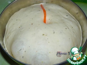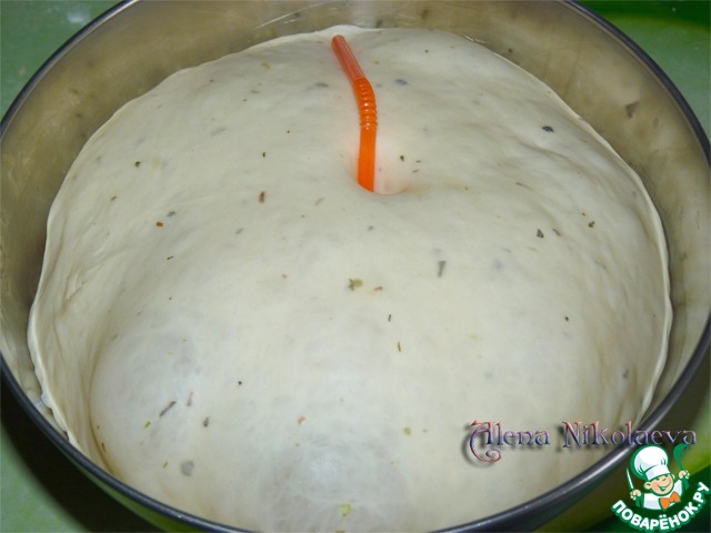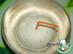 В белое тесто, которое мы убрали в миску, воткните трубочку от сока и накройте пленкой, убрать в теплое место.