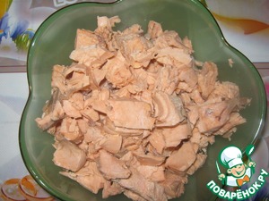 • Отварить рыбу, отделить мясо от костей и кожи.