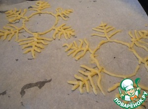 А также утолщены места стыков веточек с кругом. Не надо стараться делать ровные веточки. Наоборот, так будет более похоже на настоящую елочку. Выпекать около 13-15 минут при 200 градусах.