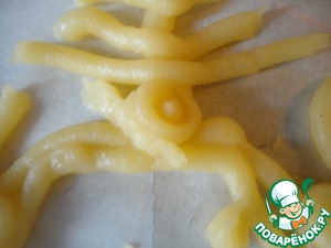 Теперь демонстрирую, как не надо делать, чтобы тот, кто захочет повторить - не наступал на те же грабли. Сначала я нарисовала будущие веточки для елочки довольно тонко. В результате они потом рассыпались после выпечки и веточки отваливались.