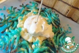Теперь о краске. Идеально, наверно, вместо воды при приготовлении глазури взять шпинатный сок. Но у меня оного не было. Можно взять пищевой краситель. Но я взяла, только не падайте сразу, зеленку.