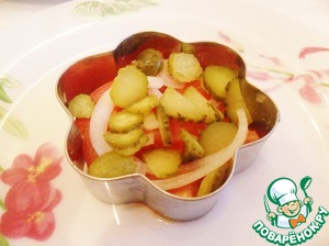 Ну а самое интересное - собираем наш салатик - я сервировала для себя с помощью вот такой формы. Устанавливаем форму в центр тарелки