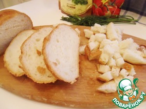 Хлеб нарезаем крупными кубиками для того, чтобы сделать наши сухарики