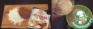 Смешать все порошковые ингредиенты – муку, крахмал, какао – и постепенно вмешать в тесто.