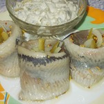 Главное в этом блюде - соус - ведь от него в восторге все в нашей семье! Есть множество вариантов ремулада, но этот пришелся мне по душе доступностью продуктов. Он подойдет к рыбным блюдам и отлично будет гармонировать с овощными закусками (например, я делаю салатик из свеклы и картофеля и подаю этот соус). А картофельное пюре с ремулад - просто с вилкой съешь! Но к Новому году я предлагаю Вам подать с этим соусом замечательные рулетики, в Германии их называют "Рольмопсы". По настоящему праздничное блюдо. Надеюсь, заинтриговала!