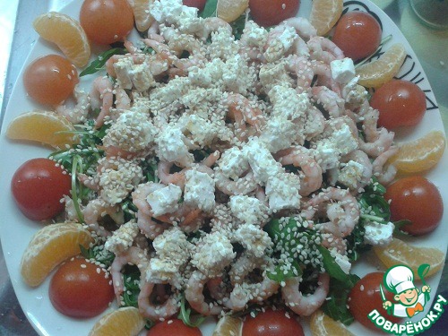 Рецепт «Салат с креветками, мандаринами и голубым сыром»: