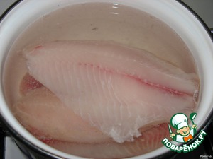 Сверху кладем второй лист лаваша. На нем раскладываем филе рыбы.
