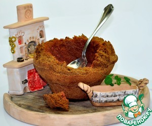 Хлебный казанок для оригинальной подачи любых первых и вторых блюд. Особенно хорошо подавать борщ и горячую домашнюю колбасу; благодаря форме казанка, еда долго не остывает и из-за пропёкшейся внутренней корке не впитывается в хлеб; затем казанок можно с удовольствием съесть - это мягкий с хрустящей корочкой хлеб.