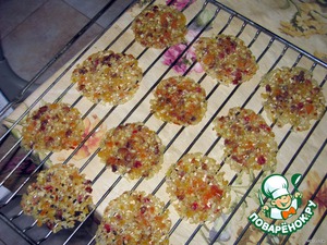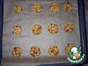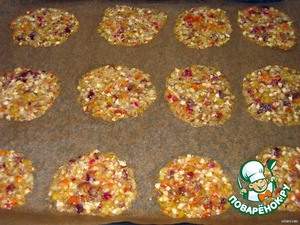 Разогреть духовку до 180С. Противень застелить бумагой для выпекания. Выложить чайной ложкой смесь на противень (на расстоянии около 8 см друг от друга), растянуть в кружочки с диаметром около 5 см. выпекать 8 минут.