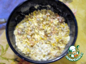 Влить масляную смесь в мучную, хорошо (не взбивая) все перемешать деревянной палочкой