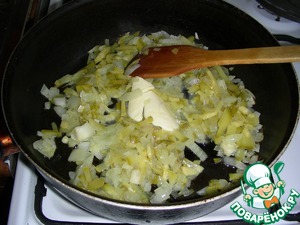 Добавляем кабачки в лук со столовой ложкой сливочного масла.