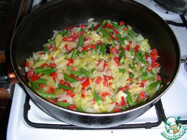 Приблизительно через 40-50 мин вынимаем картофель и перец, а мясо продолжаем готовить.