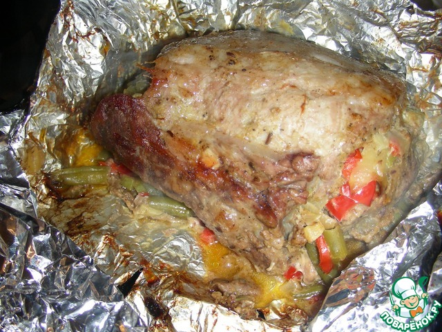 Для образования румяной корочки мясо разворачиваем из фольги и на несколько минут оставляем в духовке.