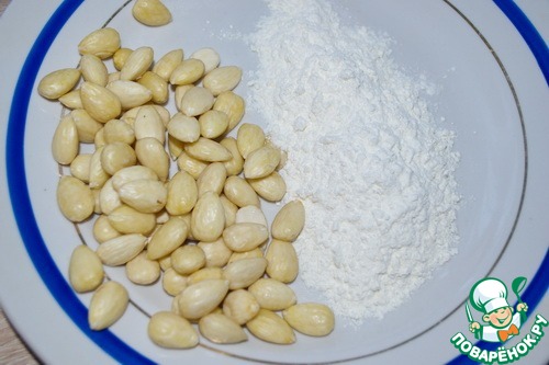 • Миндаль бланшировать в воде, снять кожицу и немного просушить.