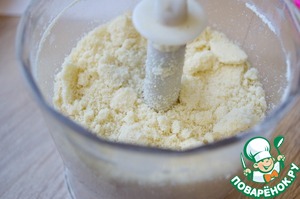 • Миндаль вместе с мукой и разрыхлителем измельчить в блендере в мелкую крошку.