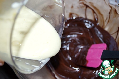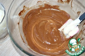 • Яйца комнатной температуры взбить с 0,25 стакана сахара, минут 5-7. Постепенно добавить яйца в шоколадную массу.